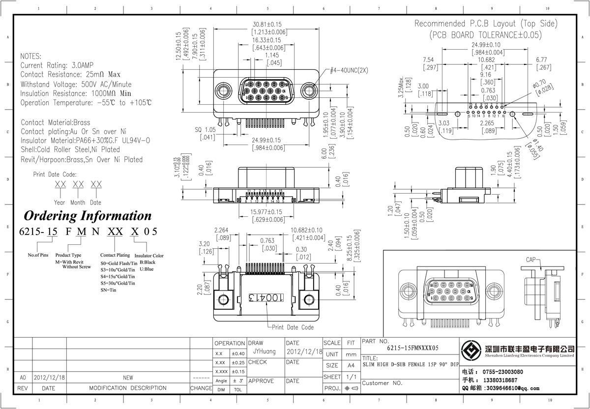 技術(shù)參數(shù):額定電流:3.0amp電流電阻:25mΩ最大絕緣電阻:1000mΩ min 承受電壓:AC 500V /分鐘工作溫度:55﹣℃+ 105℃接觸材料:黃銅觸點電鍍金或錫鎳絕緣體材質(zhì):聚酯(UL94V-0)標準:PBT的+ 30%廣發(fā)殼:冷軋輥鋼、鍍鎳黃銅,Revit /魚叉:錫鎳鍍螺絲材質(zhì):黃銅.
