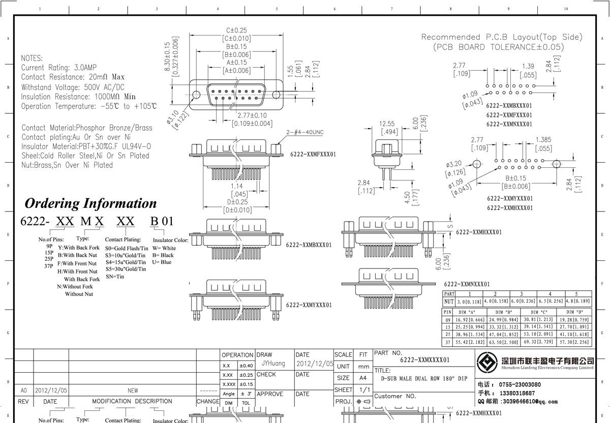 產(chǎn)品型號(hào):D-SUB 公頭 180度 雙排 鉚合鎖螺絲 連接器