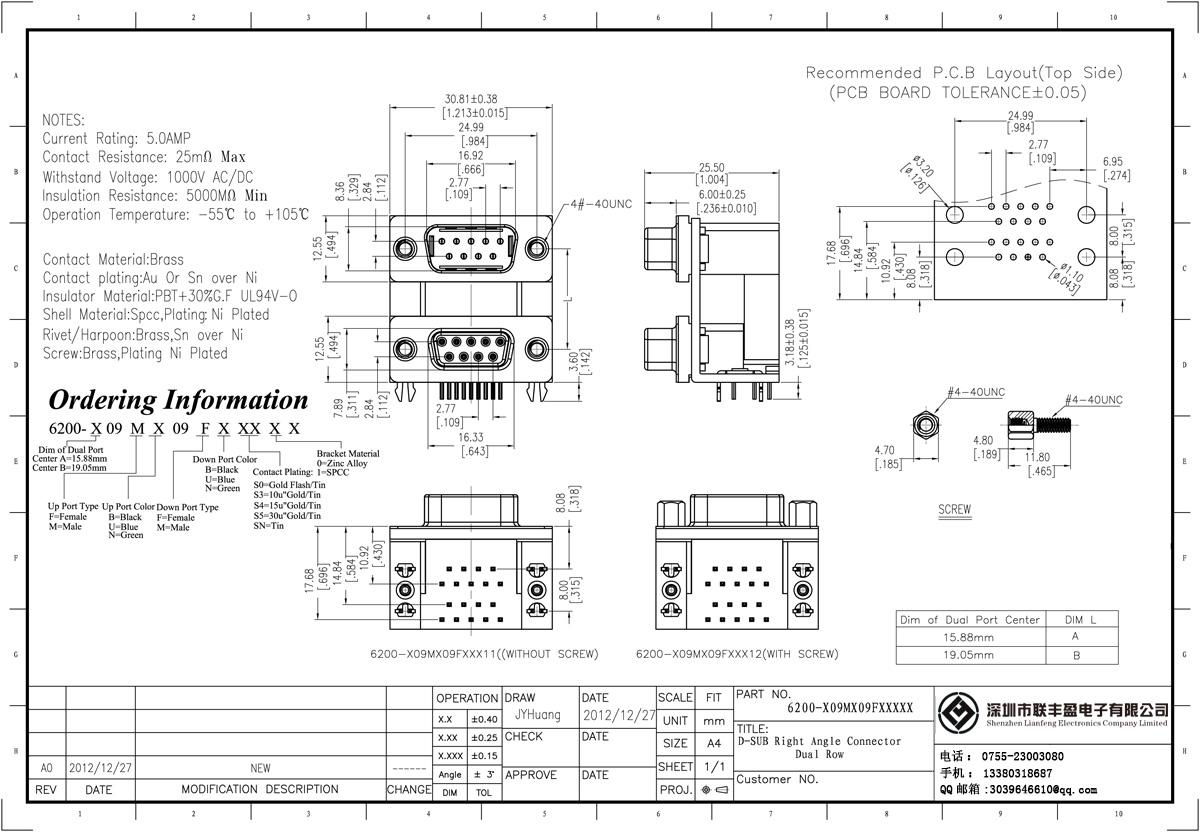 技術參數(shù):額定電流:5.0amp電流電阻:25mΩ最大絕緣電阻:5000mΩmin耐壓:1000V AC /分鐘工作溫度:55﹣℃+ 105℃接觸材料:黃銅觸點電鍍金或錫鎳絕緣體材質:聚酯(UL94V-0)標準:PBT的+ 30%廣發(fā)外殼材質:SPCC、鍍:鍍鎳/魚叉:黃銅、錫-鎳絲材料:黃銅鍍鎳,電鍍: