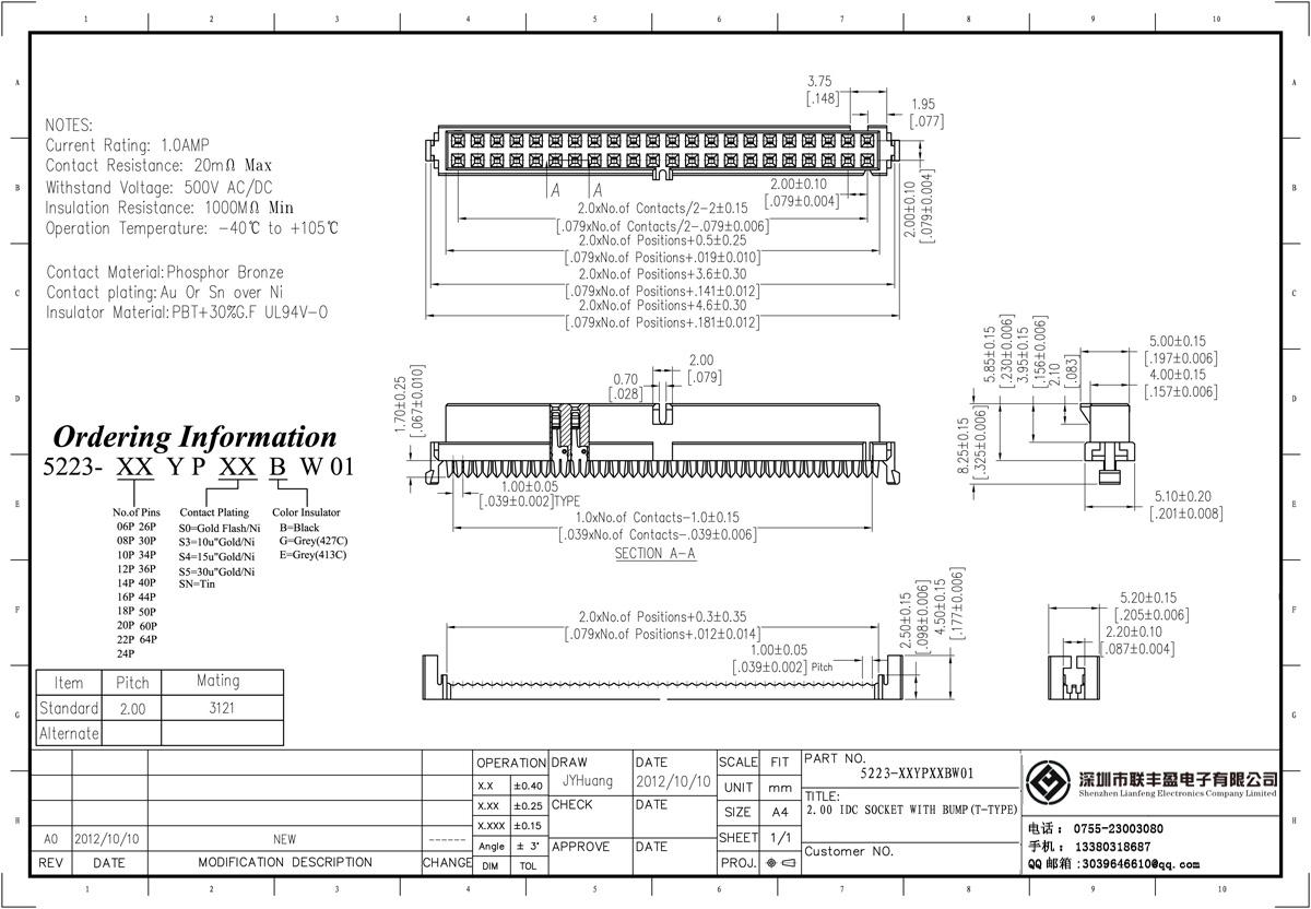 技術(shù)參數(shù):額定電流:1.0amp電流電阻:20mΩ最大絕緣電阻:1000mΩmin耐壓:1000V AC /分鐘工作溫度:40﹣℃+ 105℃接觸材料:磷青銅或黃銅觸點電鍍金/錫鎳絕緣材料:聚酯(UL94V-O)標準:PBT的+ 30% GF