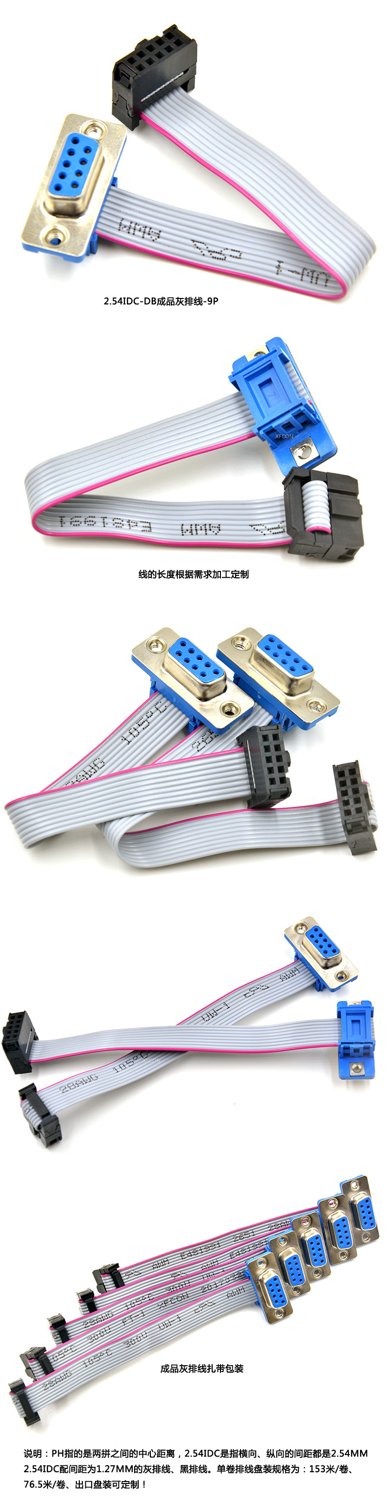 產(chǎn)品名稱:2.54IDC—DB成品灰排線-9P