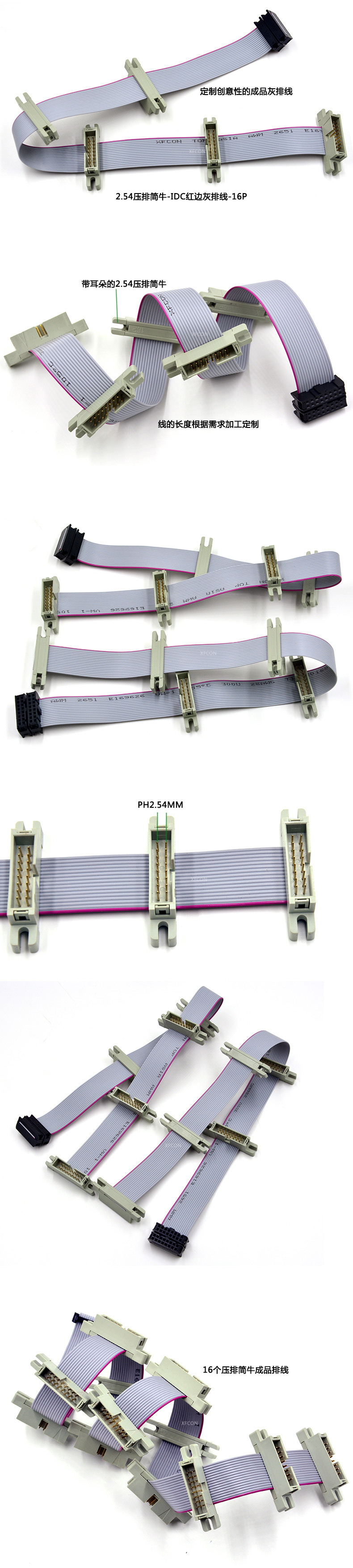 產(chǎn)品名稱:2.54帶耳朵壓排簡牛成品idc排線-16P