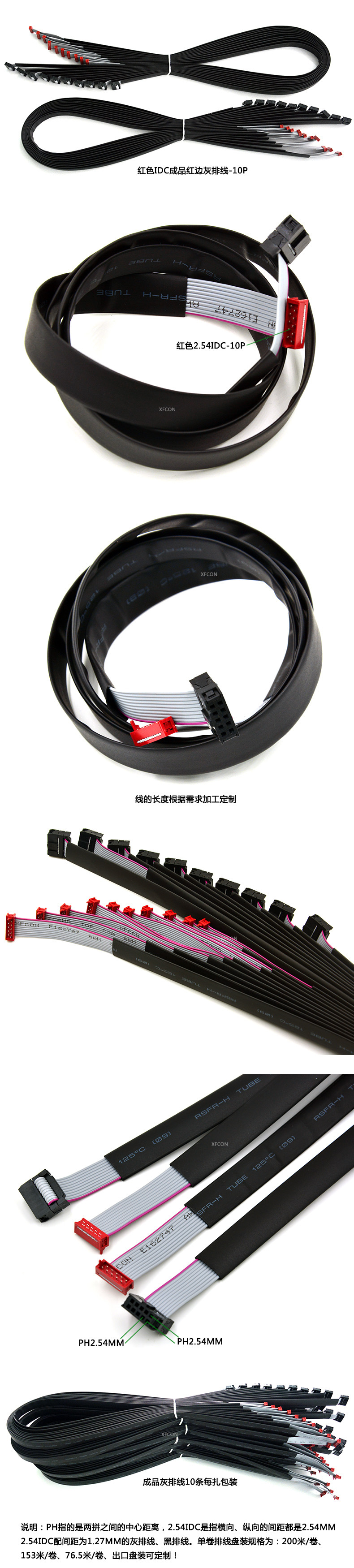 產(chǎn)品名稱:紅色2.54IDC成品灰色排線-10P