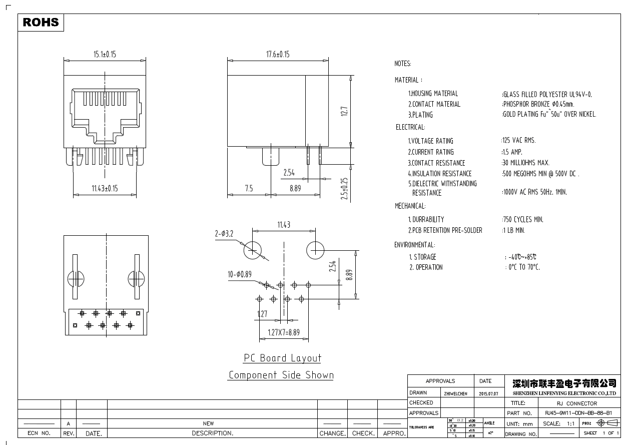 RJ45/RJ11 網(wǎng)絡(luò)連接器系列產(chǎn)品技術(shù)參數(shù)