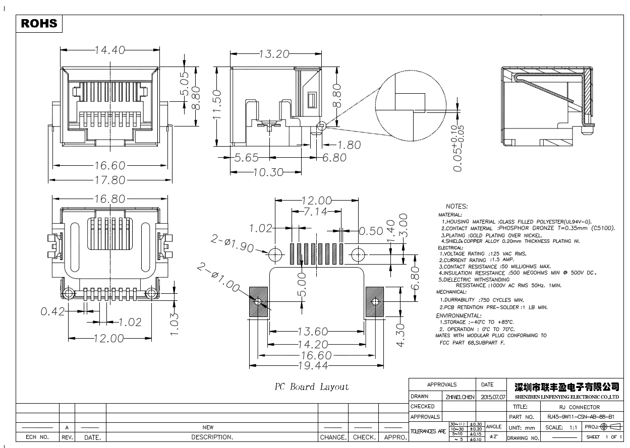 RJ45/RJ11 網(wǎng)絡(luò)連接器系列產(chǎn)品技術(shù)參數(shù)