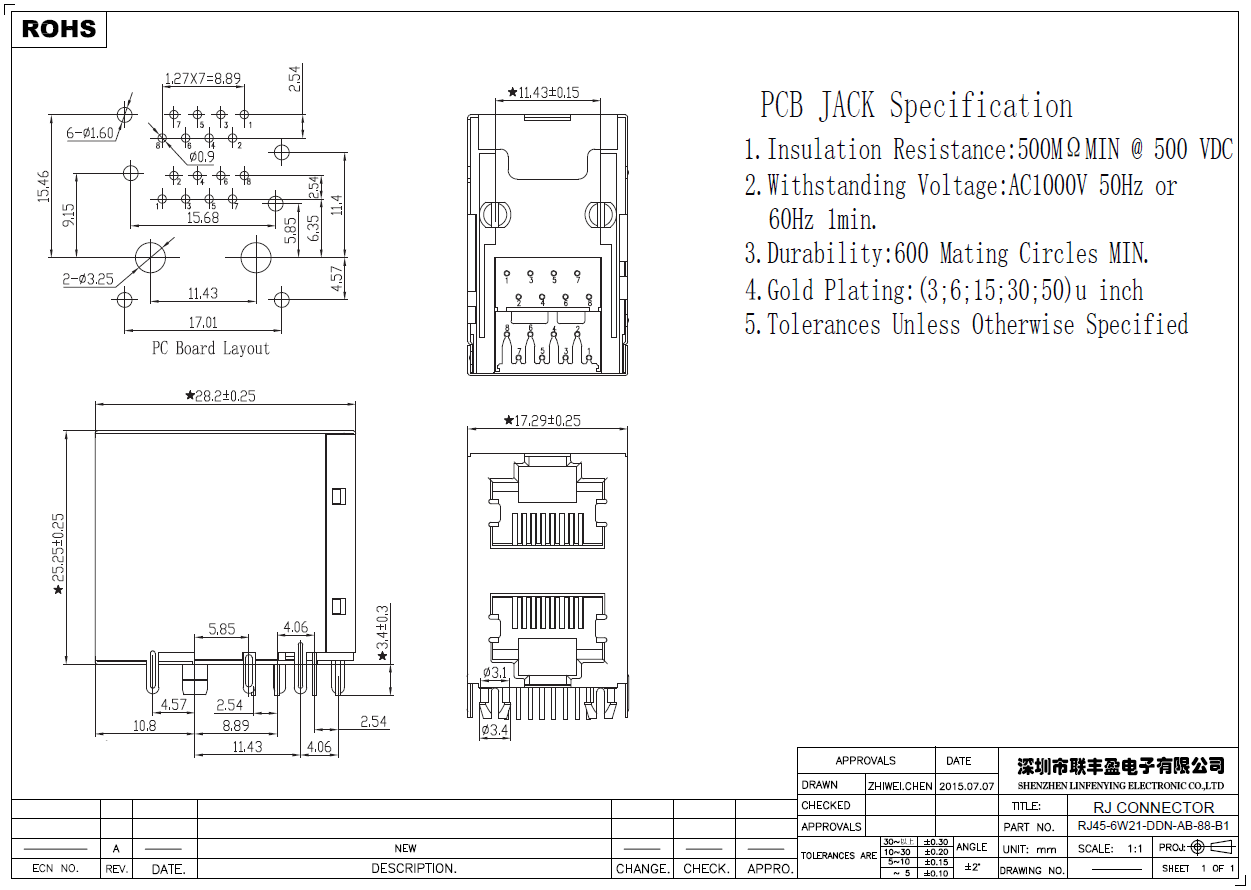 產(chǎn)品簡(jiǎn)介品名:RJ45網(wǎng)絡(luò)連接器規(guī)格:臥式插件/90°外殼:帶屏蔽LED燈:無(wú)-其它顏色可定制塑膠顏色:黑色